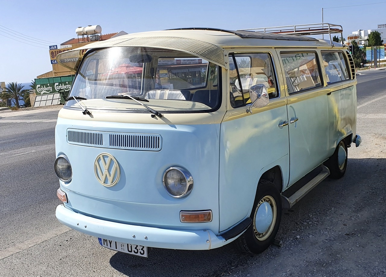 Immer Ausschau gehalten - ohne Ergebnis; doch nun nach 14 Tagen auf Zypern (endlich) der erste Bulli am Wegesrand. Gesehen auf der Küstenstraße zwischen Paphos und Peyia im Westen der Insel.