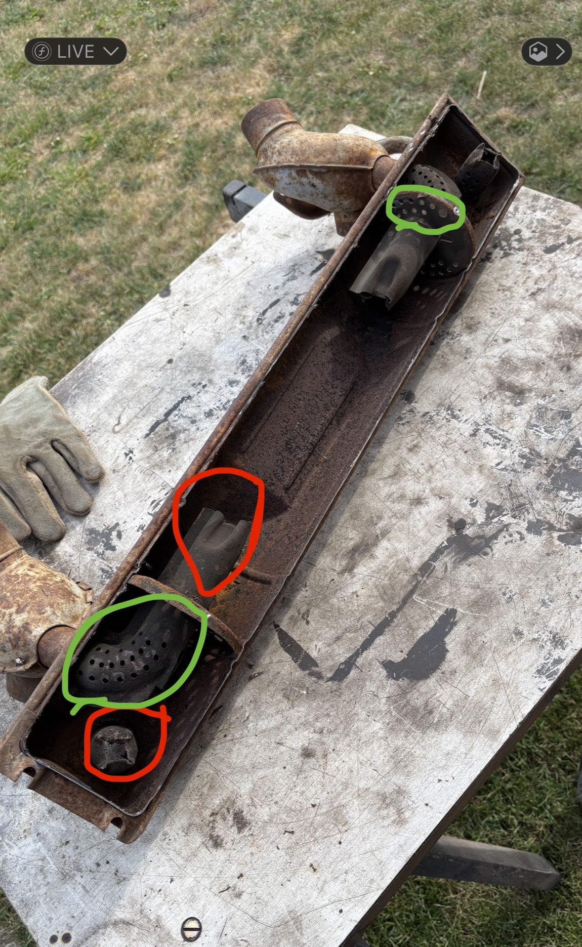 Die Grünen Stellen habe ich größer gebohrt und die roten Stellen abgesägt.