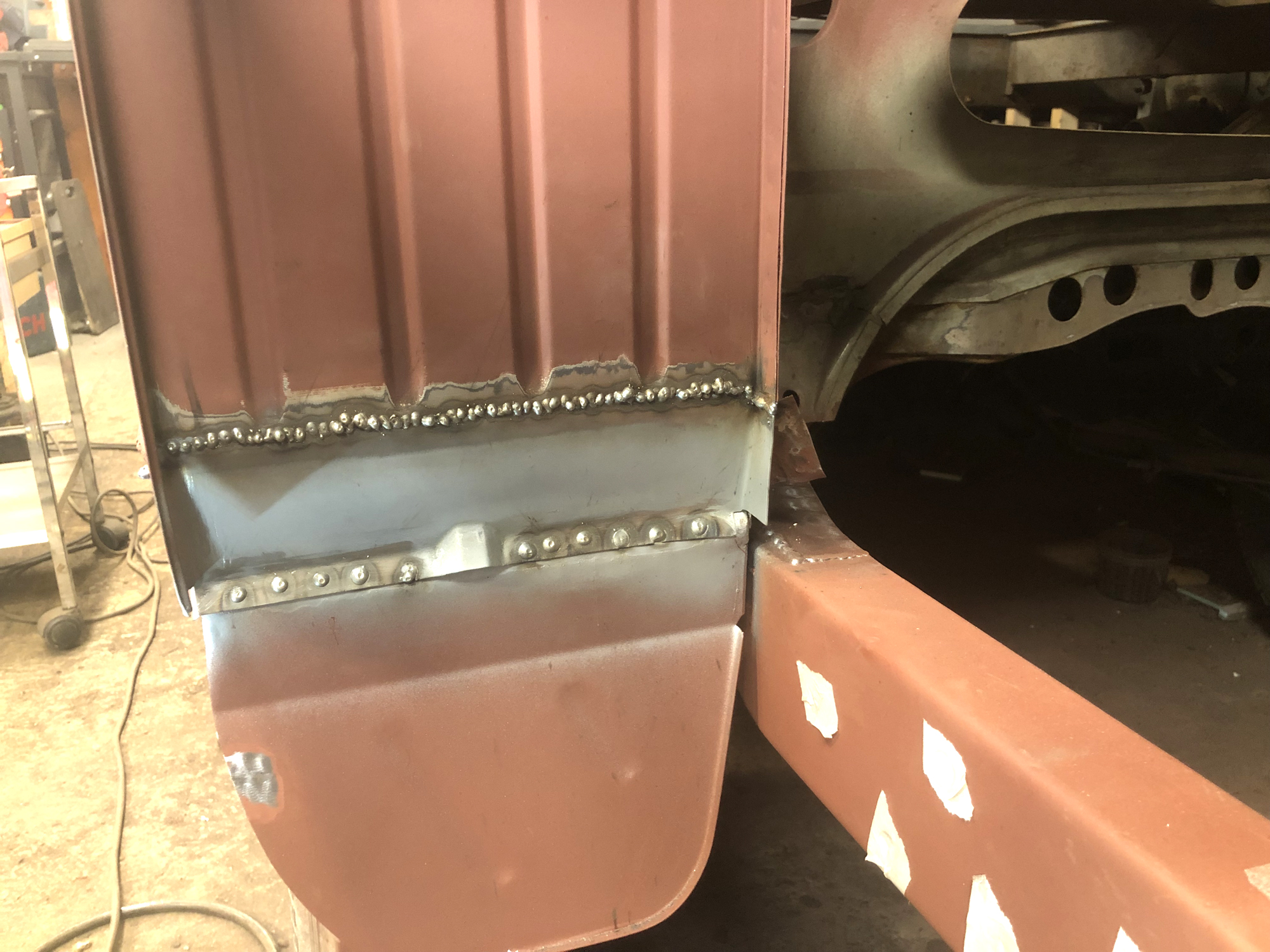 Das zuvor angefertigte Stück am Ende des hinteren Radkastens wurde ebenfalls eingeschweißt.