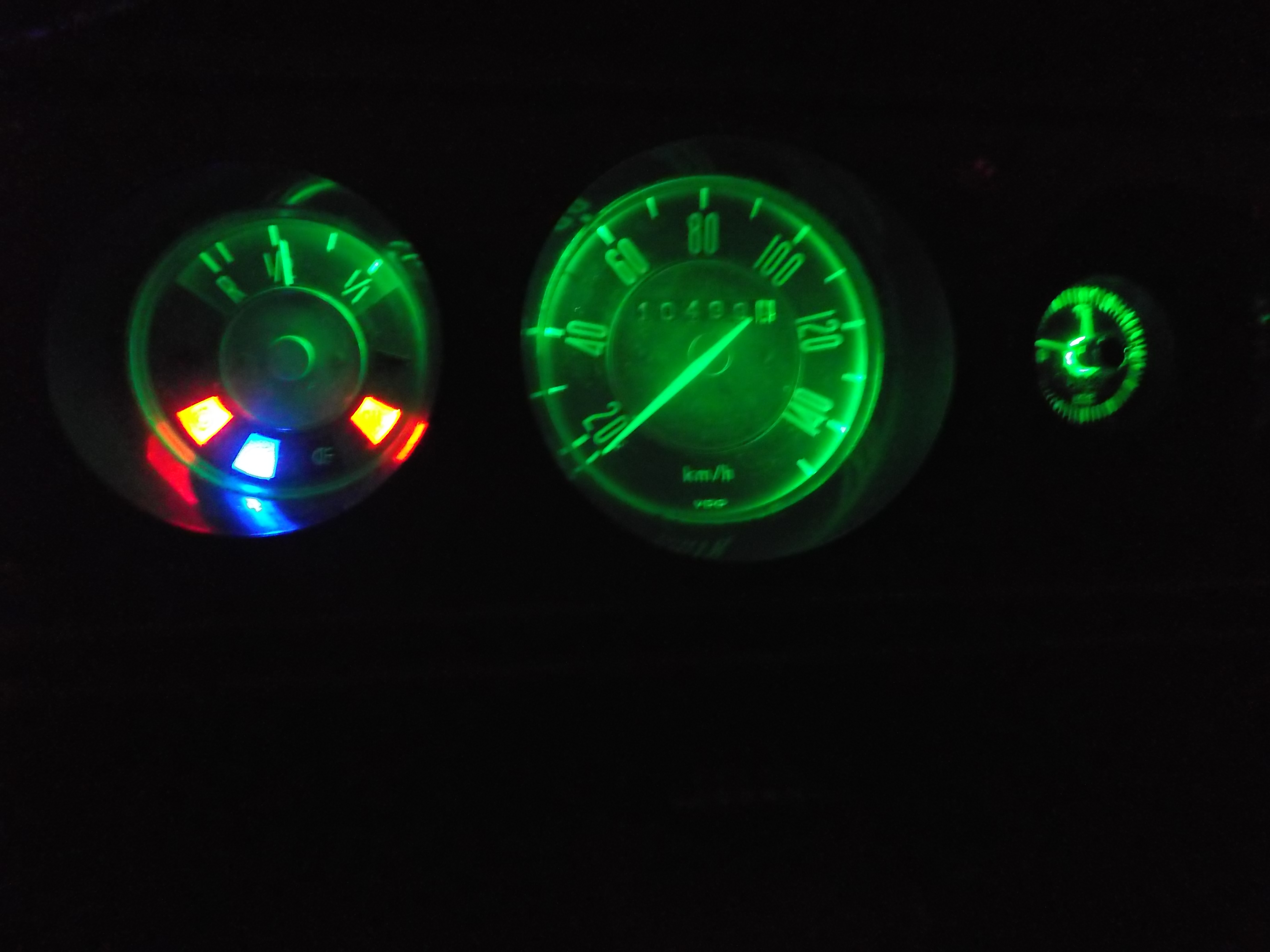 Auch die Fernlichtkontrolllampe habe ich getauscht, so dass man auch bei Tageslicht sehen kann, was gerade angeschaltet ist.