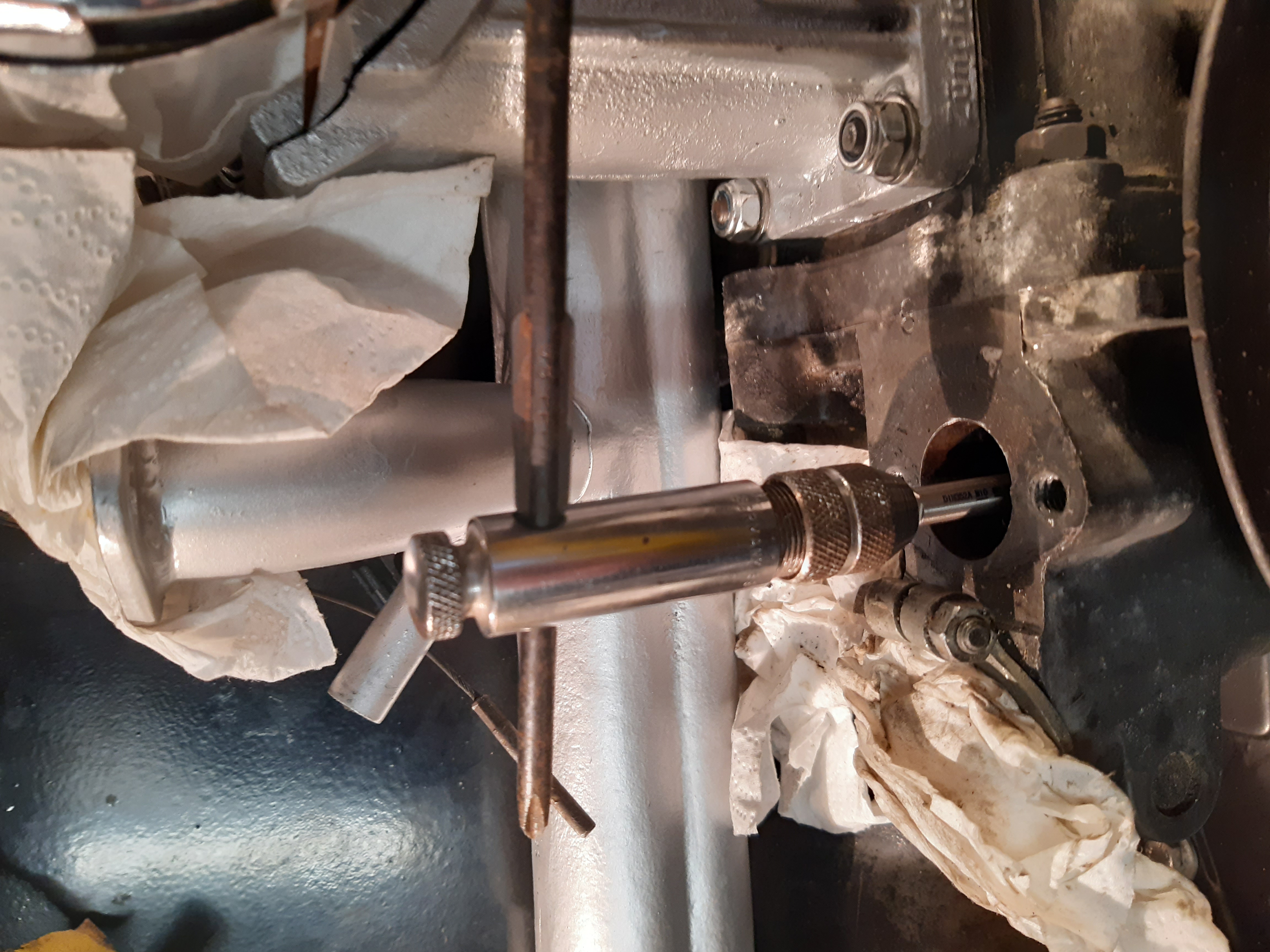Heute mit vorsichtig M10 Gewinde reindrehen die Trümmerteile geborgen.