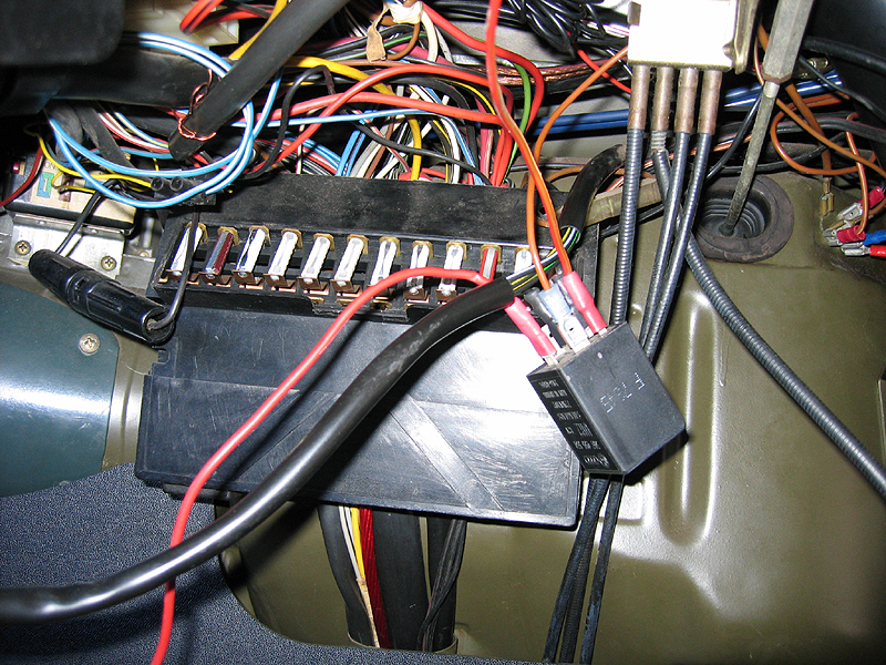 Neben ein wenig Kabel, Kabelschuhen, zugehöriger Abisolierzange braucht Ihr einen An-Aus-Schalter irgendeiner Machart. Und vor allem: ein Relais. Und zwar das mit ner fetten 19 auf dem Rücken. Artikelnummer bei VW ist 191 955 531. Vielleicht geht auch ein anderes - ich habe es aber nur an dem Teil ausprobiert und da klappt es. Soll es günstig mal bei ebay geben, vielleicht auch mal beim Schrotti schauen - zur Not eben bei VW kaufen.