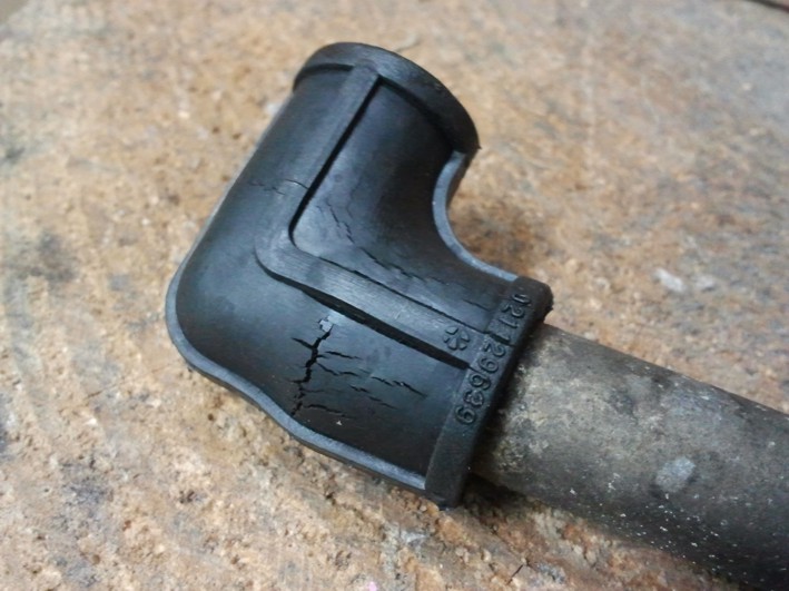 Der Schlauch unter dem Tank sieht auch nicht besser aus: Die Gummiformteile, die nicht direkt mit Benzin in Berührung kommen, sehen leider auch nicht besser aus. Wenn man dann überlegt wie teuer die verkauft werden, ist das schon frech. Bei der Peilstabmanschette habe ich eine Lösung aus 2 ineinander gesteckten Ölschläuchen verbaut. Da ist jetzt sicherlich Ruhe. Das sind jetzt nur einige Beispiele. Die Winkel von den Vergaserflanschen sind auch schon wieder rissig usw.