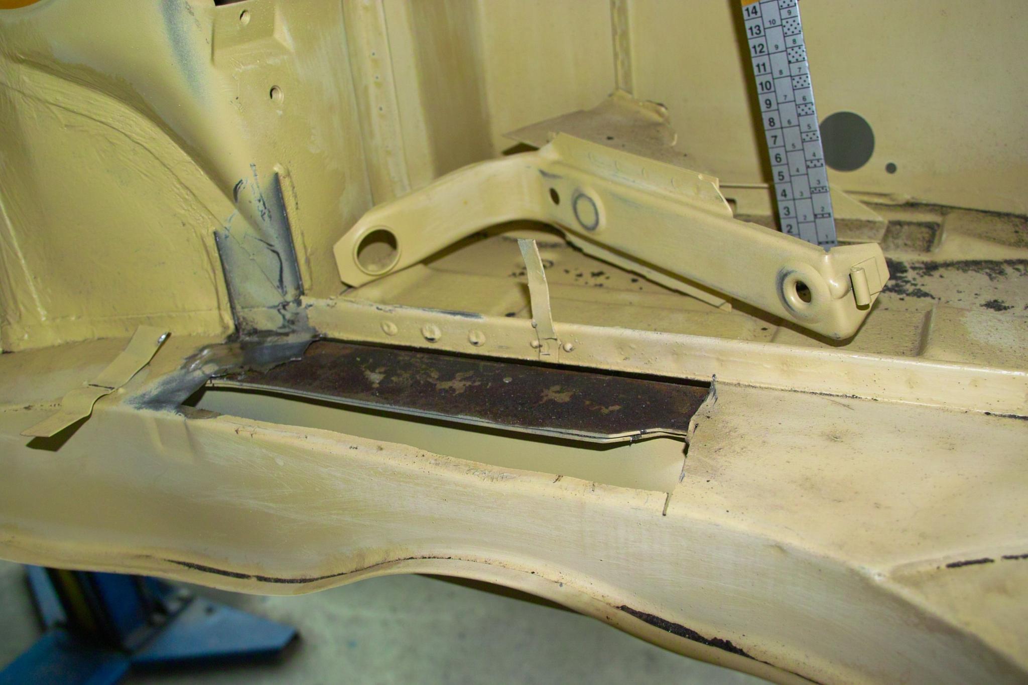 Kleine Schweißarbeiten waren nötig (Gurtpunkte, Heckblech, ein Kniestück, Schweller unter Schiebetüre wegen Kaltverformung, Bleche über Träger im Motorraum).