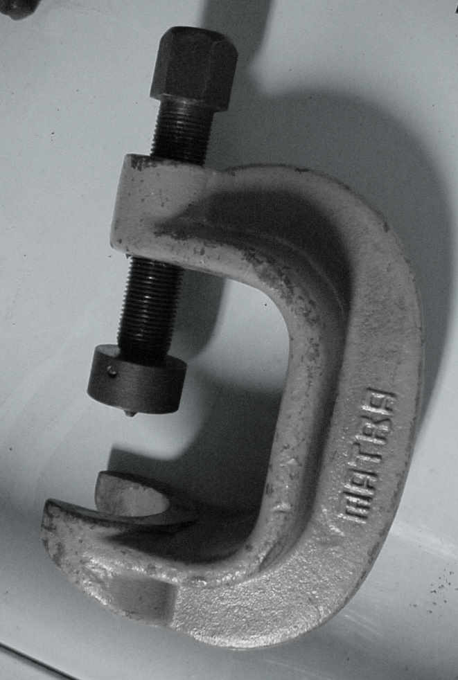 Ich hingegen benutze einen großen Kukko 2-Klauenabzieher, wobei ich die Klauen vorher etwas ausgeschliffen habe, damit sie um die Lenkradnabe passen (Textil-Tape auf die Klauen geklebt, Klauen mit Schraubzwinge gegen gehalten). Als untere Unterlage benütze ich einen dicken 5 mm Ring, der nur zu 3/4 geschlossen ist und dann auch nur auf das Metall der Lenkradnabe drücken kann, ohne den Kunststoff zu berühren. Oben auf dem Lenkrohr, wo die Spindel des Abziehers drückt, habe ich als Unterlage eine im Durchmesser passende Schraube genommen. Den Schraubenkopf hab ich mit einer kegeligen Bohrung versehen, so dass die Spindel eine Zentrierung findet.