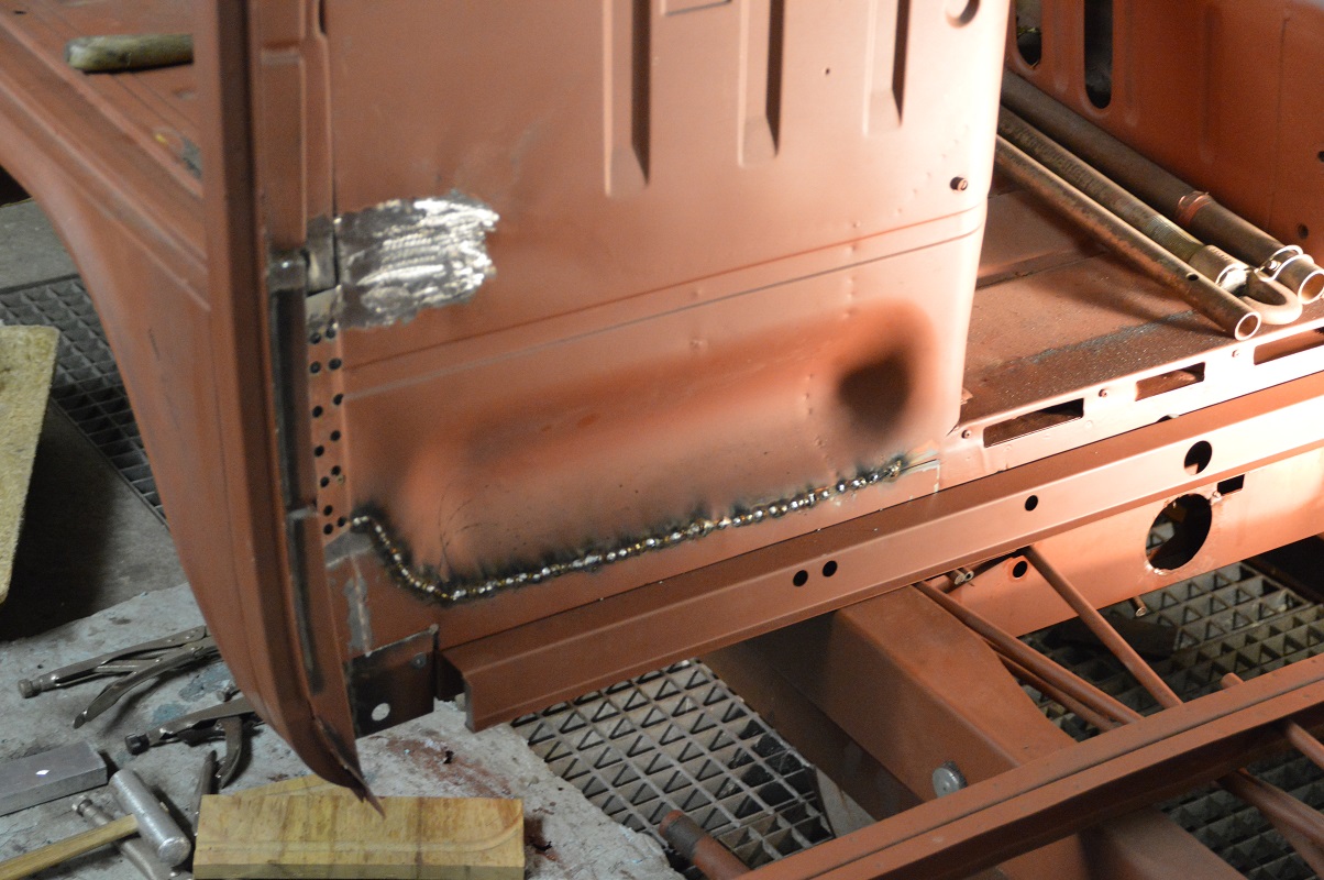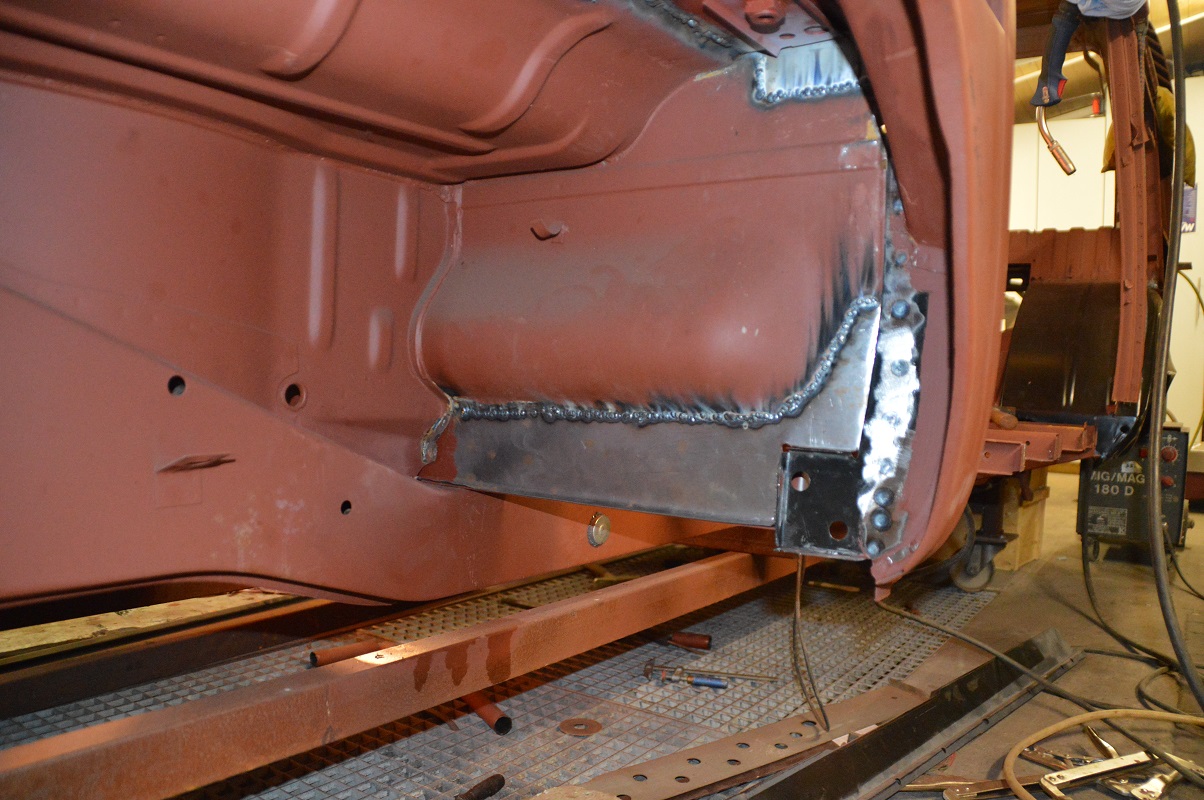 Die Wagenheberaufnahme dann dasU-Profil und die "Spritzwand" ergeben an der Stelle dann ja auch schon wieder 3 Lagen...ich hab keinen originalen Anhaltspunkt, ob das alles so richtig ist.
