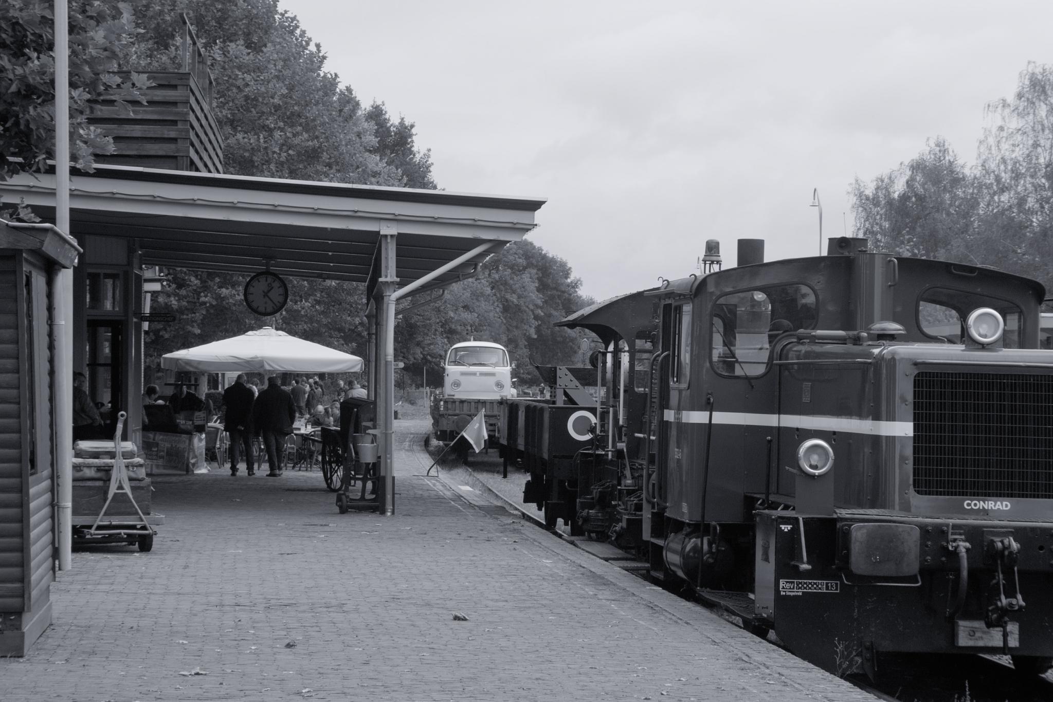 Noch einen Kaffee und eine Waffel im Sonnenschein vor dem gepflegten Bahnhofsbistro genossen, während der Sohn dem Autozug hinterher gelaufen ist - hin - und - her. Den Lockführer gefragt, ob der Sohn mal mitfahren darf - DAS ging leider nicht - hat der Chef verboten - schade. Muss er halt laufen.