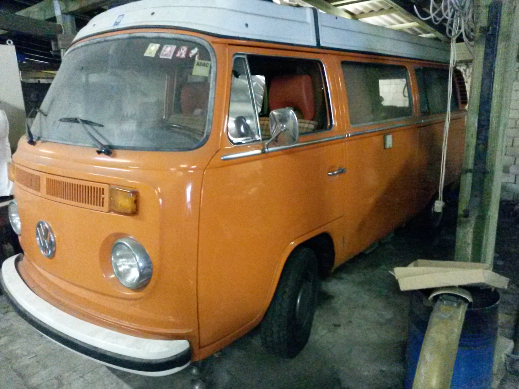 wir möchten uns kurz vorstellen. Wir sind zwei Brüder, Alexander und Christoph, denen völlig ungeplant ein T2B Westfalia , Bj. 74, 68 PS Automatik über den Weg lief. Durch Zufall erfuhren wir von dem Vorbesitzer, der sich schweren Herzens von dem guten Stück trennen wollte. Er stellte den Wagen vor 8 Jahren „vorübergehend“ in einer Scheune ab. Komplett aufgerüstet und voll bepackt. Als wäre er gerade aus dem Urlaub gekommen. Dann klappte das aber nicht wie geplant und aus „vorübergehend“ wurden 8 Jahre. Der Wagen hat eine gute Basis, hier und da Rost, aber auf jeden Fall eine Menge noch unbekannter Standschäden. Das erste, was wir machen mussten, waren die völlig festgerotteten Bremsen zu lösen. Nach der ersten Sichtung muss die Inneneinrichtung dringend überholt werden, überall steckt der Schimmel und Muff aus 8 Jahren. Auch der Faltenbelag vom Klappdach ist ziemlich im Eimer und muss neu. Das alles macht uns aber nicht so furchtbar viel Sorgen, da wir Zeit und Geduld haben (und ein bisschen Geld haben wir auch schon zurück gelegt).