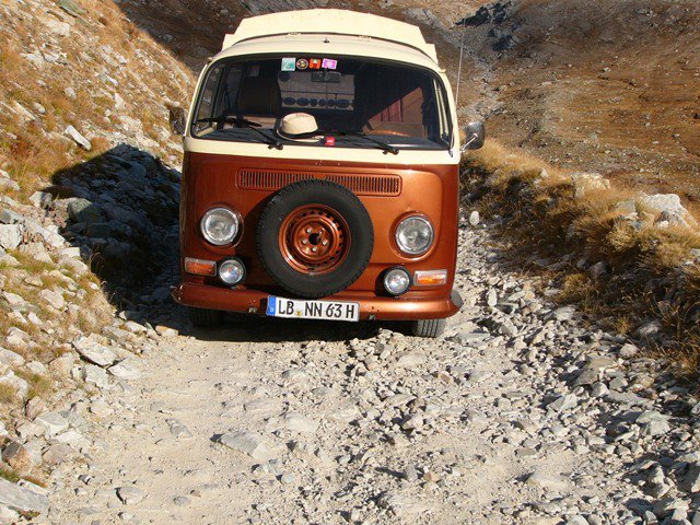 Die Pässe habe ich zwar noch nicht alle mit dem Bulli (sondern mit dem Mopped) gefahren, aber das sollte kein Problem sein. Wirklich steil ist keiner davon.