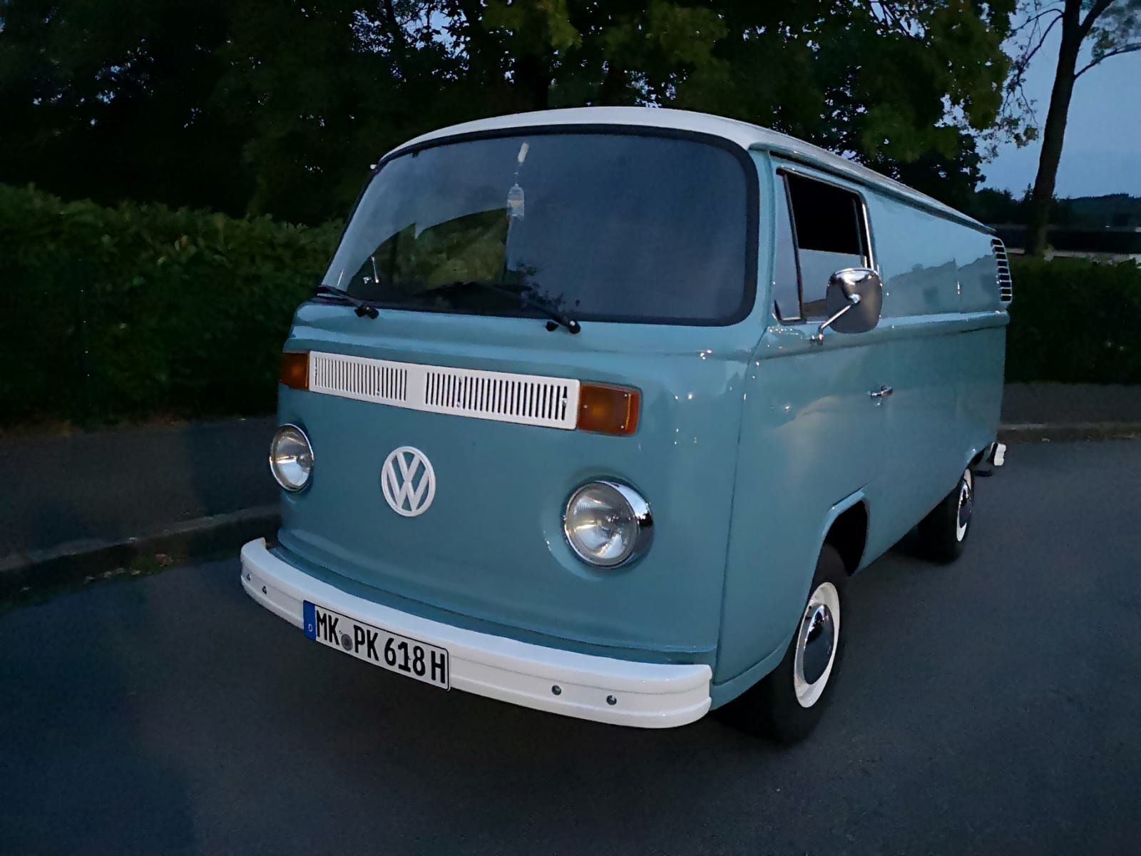 Das ist unser Paulchen ein T2b Kastenwagen Bj.1975 1600ccm 50 PS in Deutschland gebaut, von da aus ging es die nächsten knapp 43 Jahre nach Griechenland wo er wohl im Dienste einer Bäckerei stand. Letztes Jahr wurde er dort Restauriert und kam im Juni zurück nach Hause wo er eine Vollabnahme und H Kennzeichen ohne Mängel bekam. Nun ist er seit einer Woche in unserem Besitz und wir hoffen mit ihm unvergessliche Jahre erleben zu können und diese mit mit euch zu teilen. Vielleicht trifft man sich ja auf diversen Treffen und kriegen durch euch einiges an tipps zwecks Ausbau und falls irgendwas anderes Anliegen sollte.