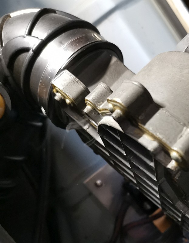 Habs ausprobiert, funktioniert prima :) Kurz nachdem der Dampf drin war, kam er auch schon wieder an diversen Stellen am Luftfilterkasten heraus. Da ist es mir aber ziemlich egal, liegt ja vor dem LMM. Neben dem undichten Luftfilterkasten konnte ich Leckagen an zwei weiteren Stellen finden, nämlich an der Welle der Drosselklappe und am unteren Deckel des Luftmengenmessers. Von letzterem habe ich mal ein Bild gemacht. Ich hoffe, die kleine Dapfschwade lässt sich erkennen.