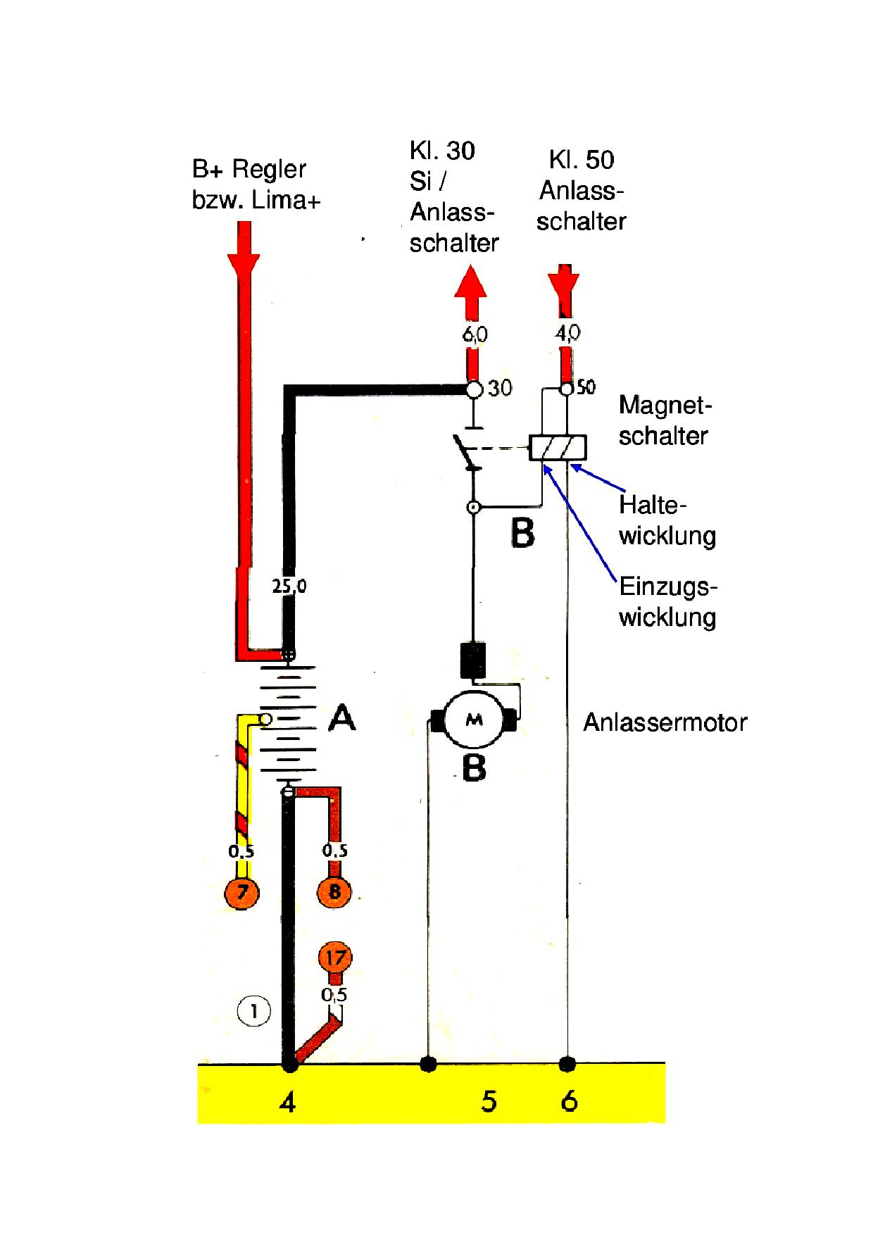 (Klemme 30 zum Anlasser hin.) Ich hoffe, dass die Angelegenheit nun soweit geklärt ist, ansonsten bitte nachfragen.