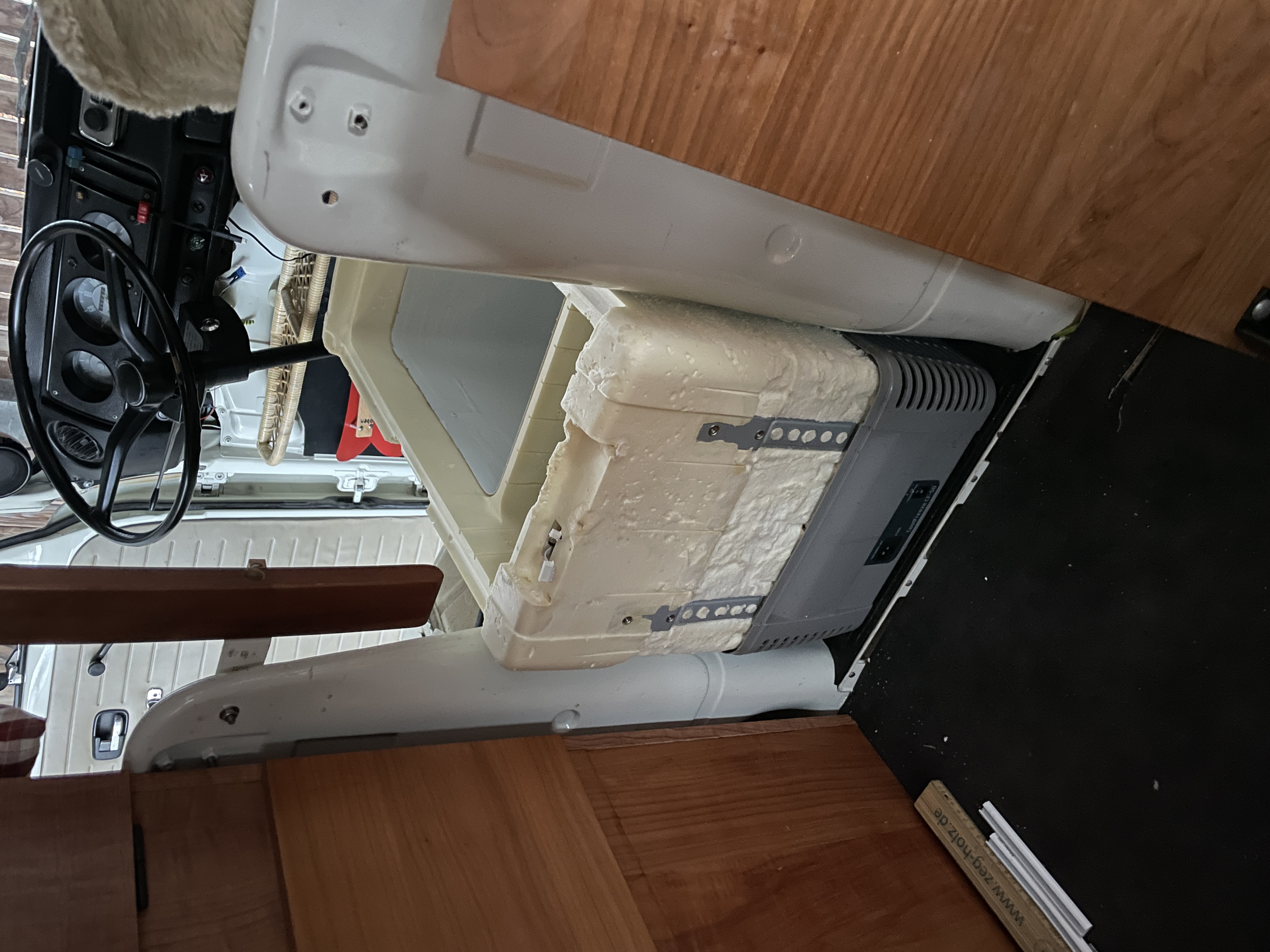Habe eine Kühltruhe CF 50 mit knapp 45 Litern und möchte diese aus Platzgründen zwischen die Vordersitze stellen. Leider fehlten hier 1-2 cm von der Breite zwischen den Blechen. Da die Kühltruhe unter dem Plastik ausgeschäumt ist habe ich sie aufwendigst zerlegt und seitlich etwas schmaler gemacht, sodass sie nun dazwischenpasst (auch mit der Plastikverkleidung drüber). Siehe Bilder