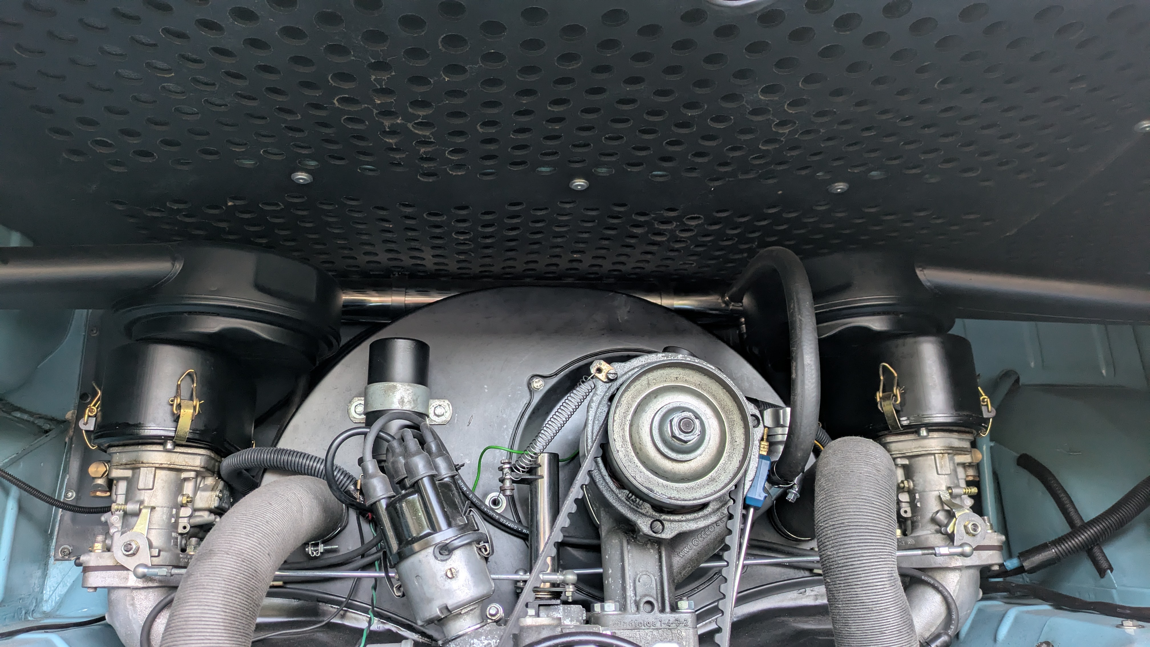 Ich habe im Freundeskreis noch einen komplett originalen, unrestaurierten 70er da könnte ich bei Gelegenheit mal ein Foto vom Motorraum machen.