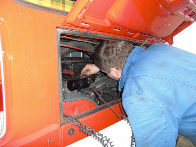 Ich habe meistens den kompletten Werkzeugkoffer mit. Verstaut habe ich ihn unter der Klappsitzbank, da der Platz links im Motorraum von der Standheizung belegt ist.