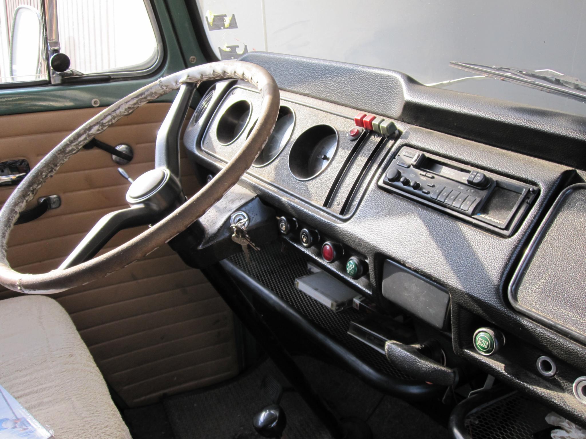 Der Fahrerbereich gehört ledigich einer gründlichen Reinigung unterzogen; sowohl Türpappen, als auch Armaturenbrett befinden sich in sehr gutem Zustand.